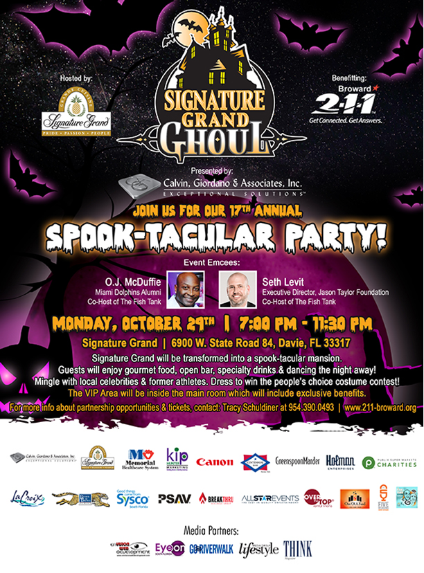 2-1-1 Broward, 17th Annual Signature Grand Ghoul, October 29th