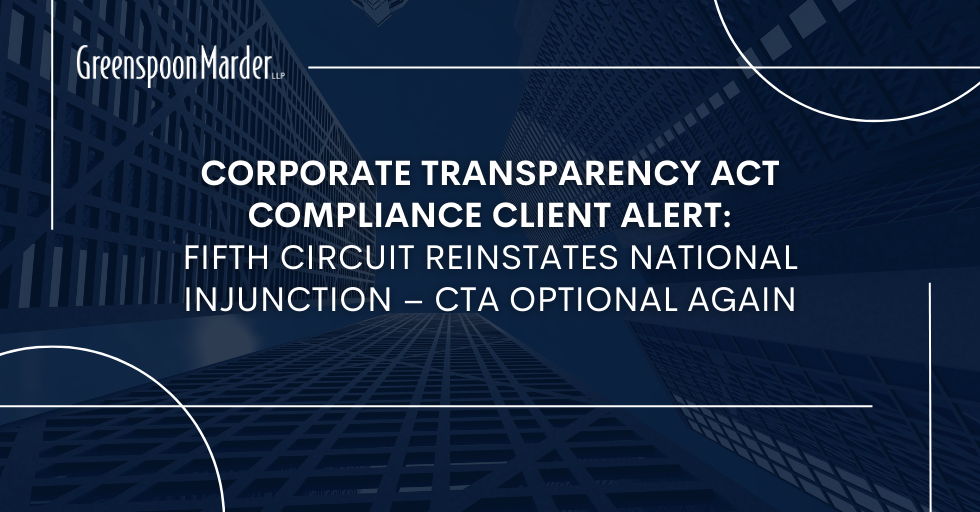 There will clearly be additional decisions from various courts, and whether the CTA is ultimately enforceable will probably be decided by the U.S. Supreme Court in the new year. We will provide updates as they occur.