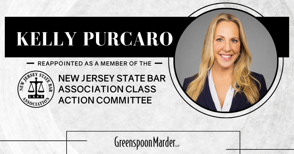 Newark, N.J. – July 10, 2023 – Greenspoon Marder partner Kelly M. Purcaro has been reappointed as a member of the New Jersey State Bar Association (NJSBA) Class Action Committee for 2023-2024. The work of the committees is essential to advancing the interests of the NJSBA, the legal profession, and the public. For the Class Action Committee in particular, this includes addressing substantive and procedural issues involving class action lawsuits such as legislation, case law developments, rule changes, new filings, settlements, arbitration developments, and practice area trends.