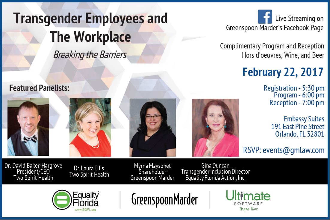 Transgender Employees and The Workplace: Breaking the Barriers Seminar, February 22, 2017